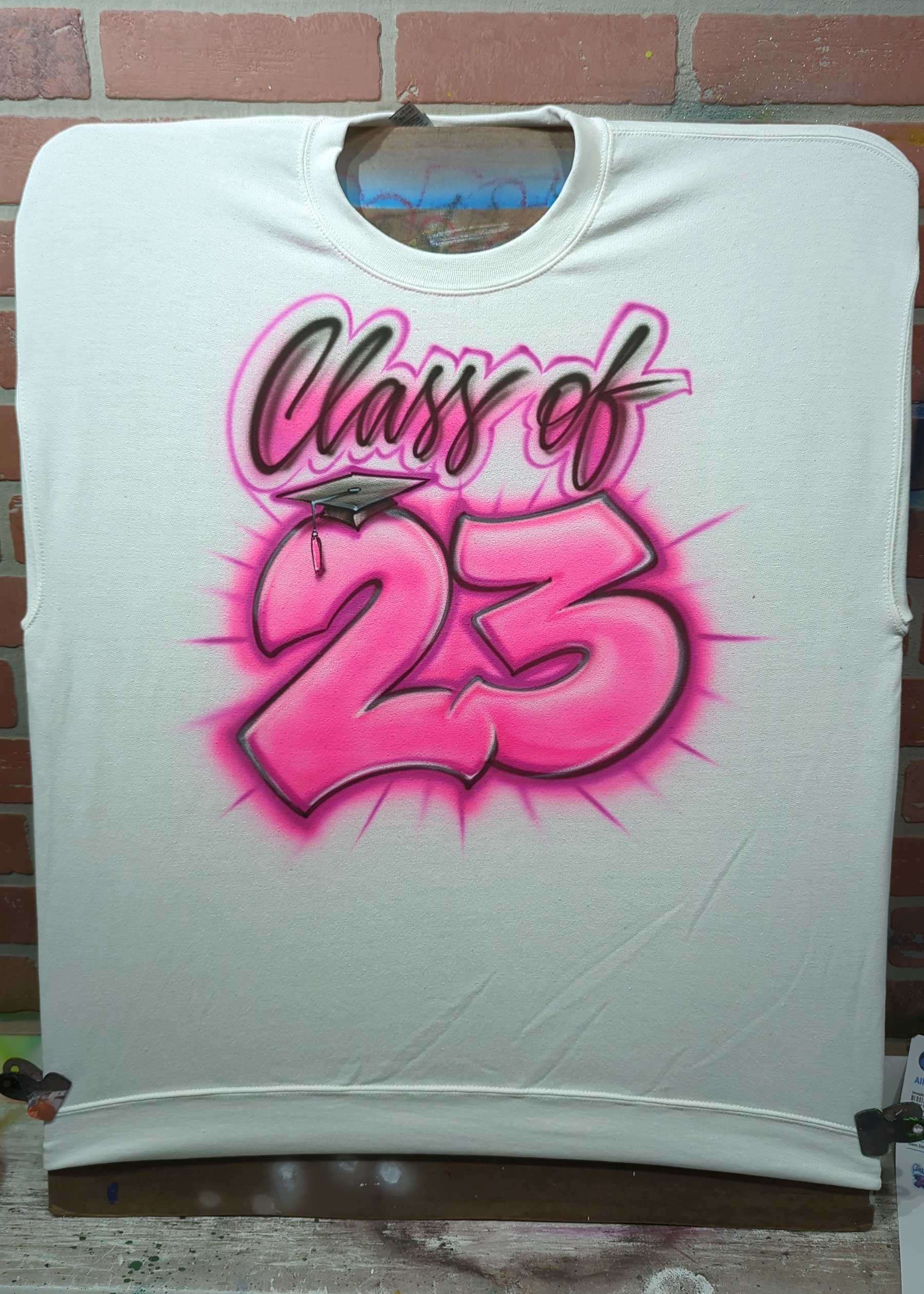 Customize your look with the 'Graduation Class Design' airbrush design. Perfect for events, personalized apparel, or unique gifts celebrating your style.