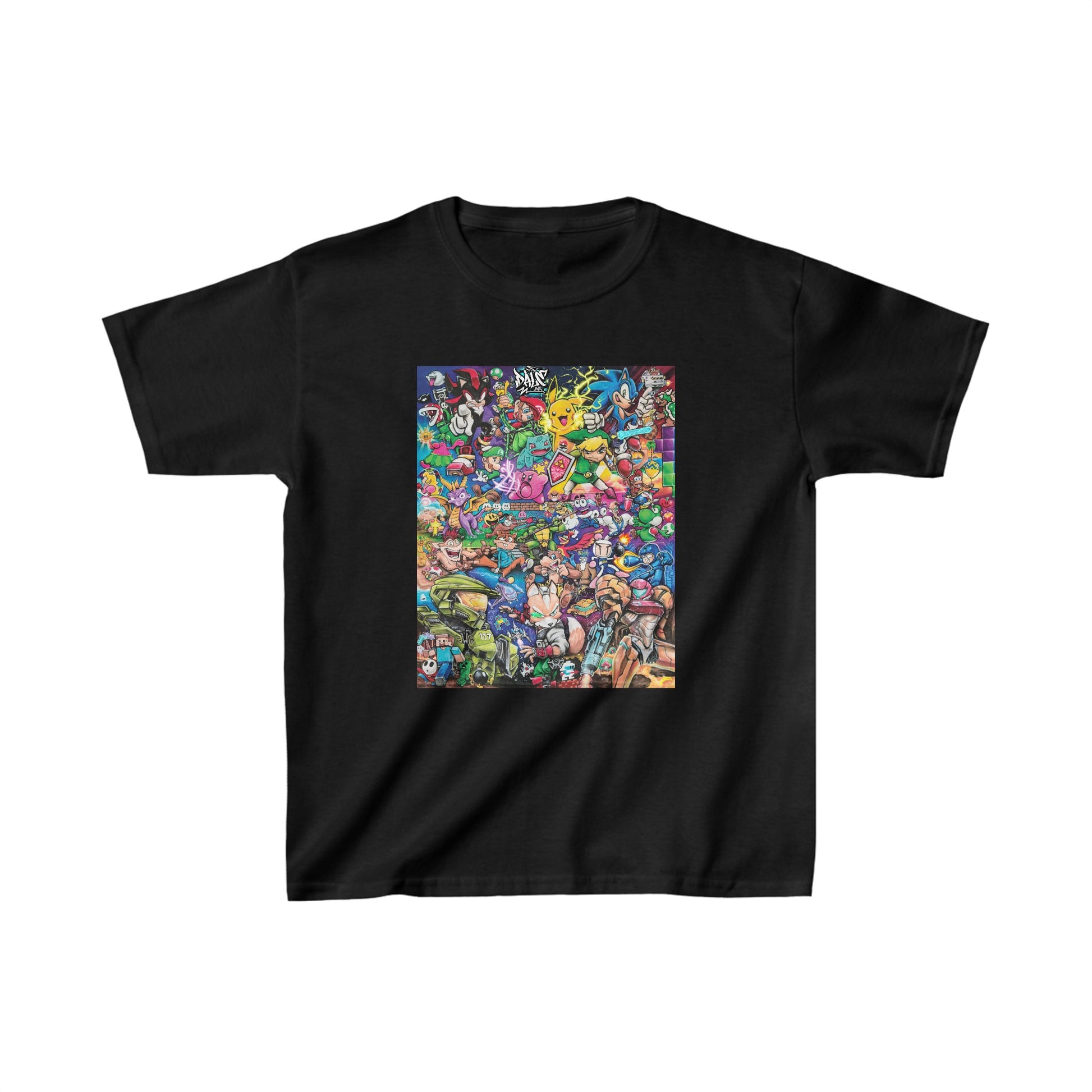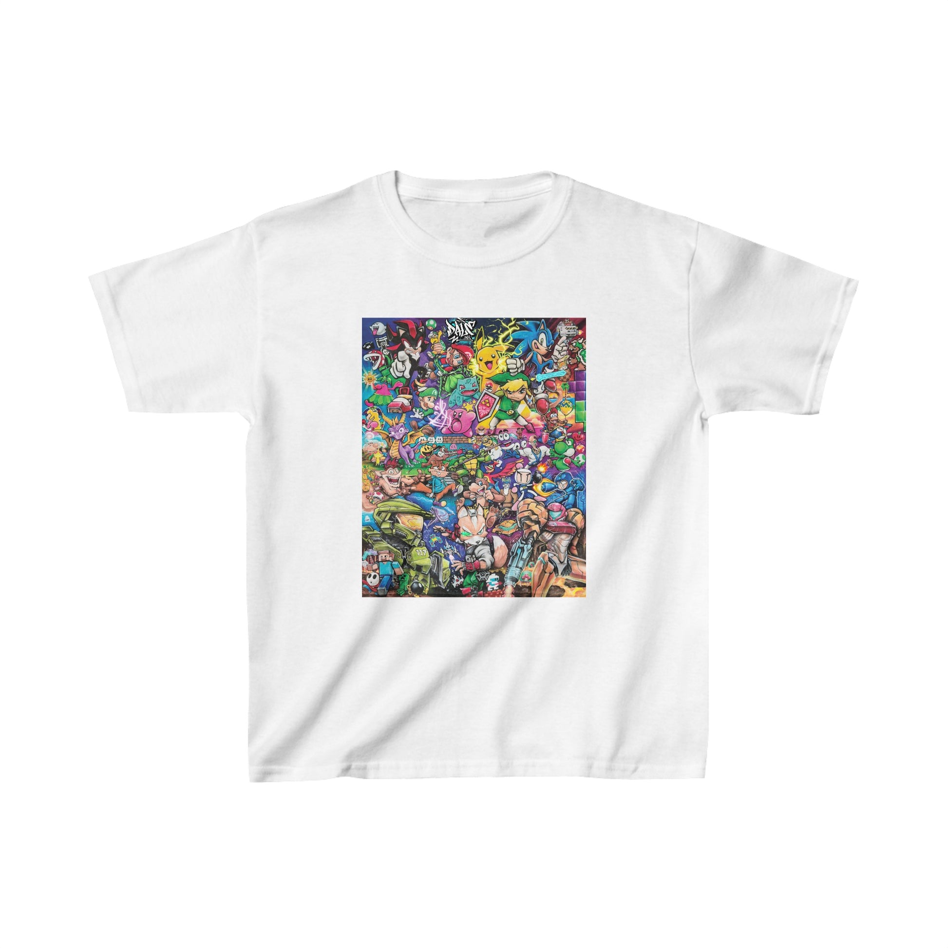 Introduce the next generation to the magic of classic gaming with the Retro Gaming Legends Kid's Heavy Cotton T-Shirt. This shirt features a vibrant, hand-painted design by Dale the Airbrush Guy, showcasing iconic characters from beloved retro games. Perfect for everyday wear, this tee combines comfort and durability, making it ideal for young gaming enthusiasts.