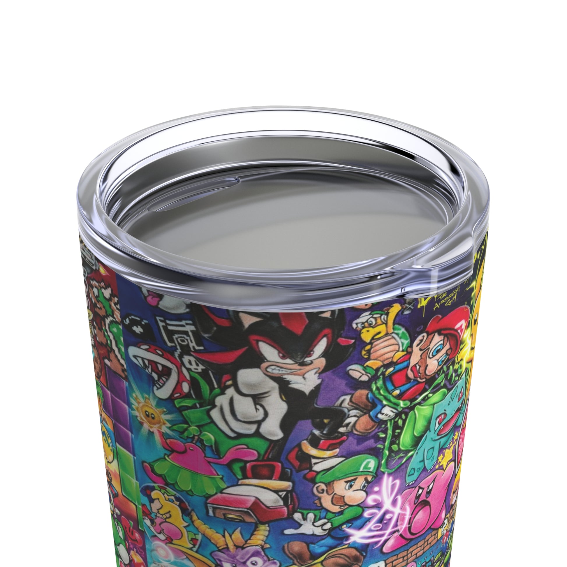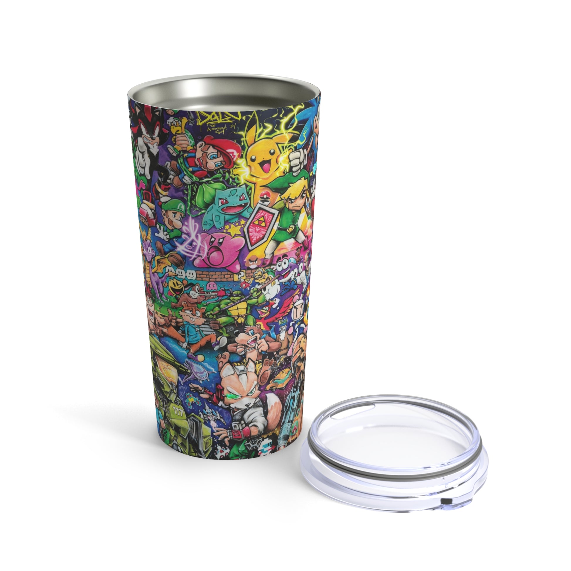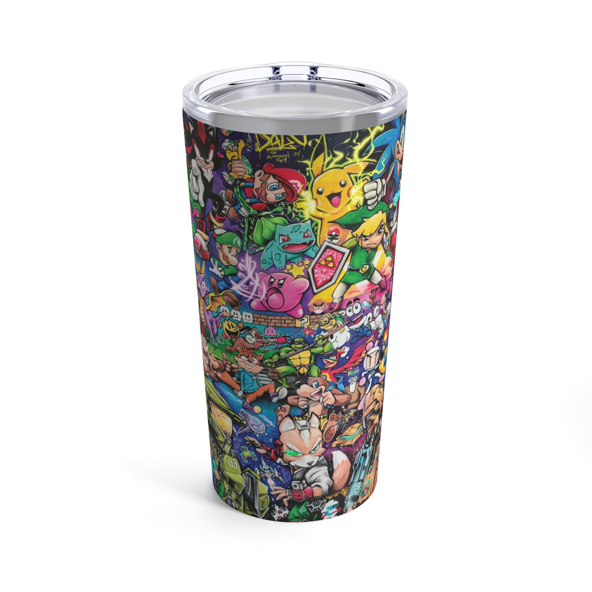 Enjoy your favorite beverages on the go with the Retro Gaming Legends 20 oz Tumbler. Featuring a vibrant, hand-painted retro gaming design by Dale the Airbrush Guy, this tumbler combines style and functionality. With double-wall insulation, it keeps your drinks hot or cold for hours, making it perfect for daily use.
