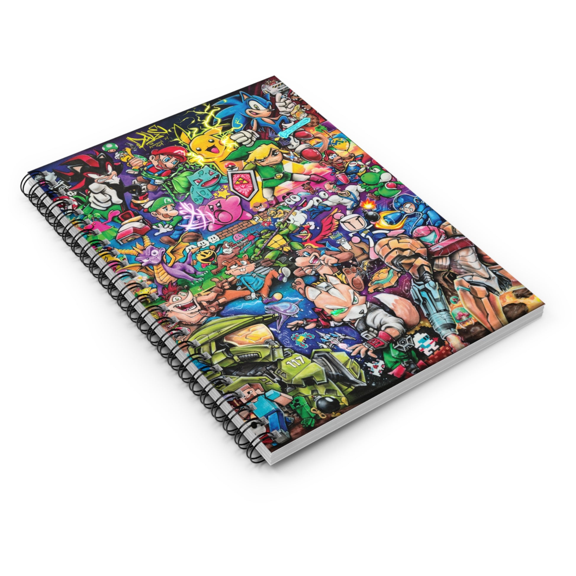 Keep your thoughts, notes, and ideas organized in style with the Retro Gaming Legends Spiral Notebook. Featuring a durable printed cover with the vibrant, hand-painted retro gaming artwork by Dale the Airbrush Guy, this notebook is both functional and eye-catching. Whether it's for school, work, or personal use, this notebook is the perfect companion for everyday life.