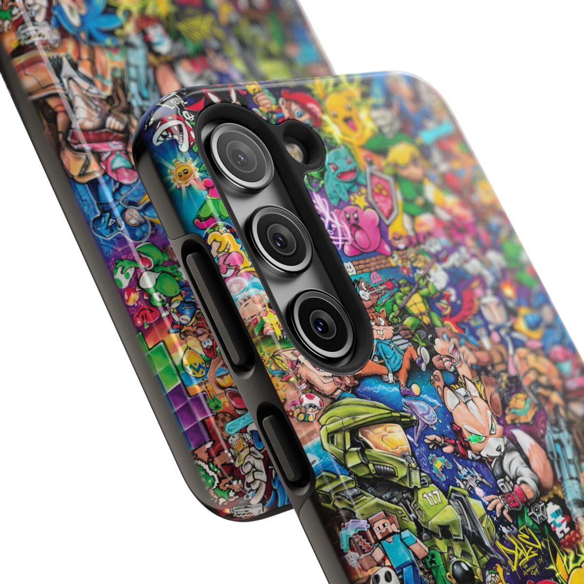 Protect your phone in custom style with the Retro Gaming Legends Tough Phone Case. Featuring highly detailed, hand-painted retro gaming artwork by Dale the Airbrush Guy, this case combines aesthetics with functionality. The lightweight, impact-resistant design ensures your phone stays safe from drops and bumps, while the vibrant artwork makes a bold statement.